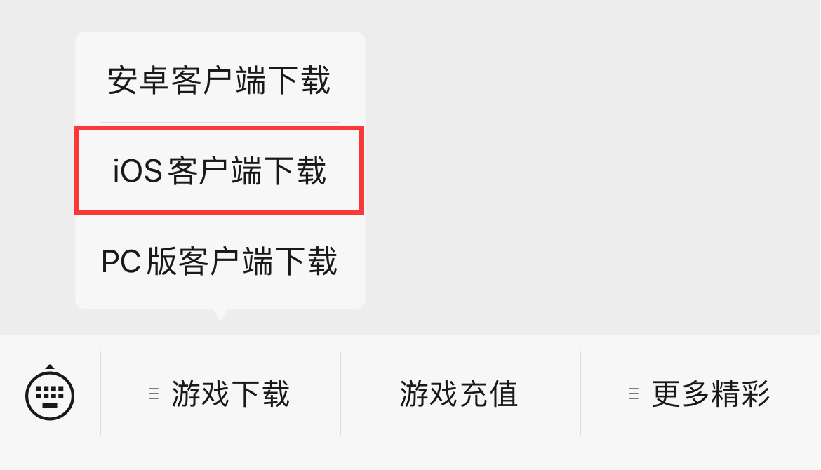 3.在官方公众号菜单栏【下载游戏】→【iOS客户端下载】进行游戏下载。