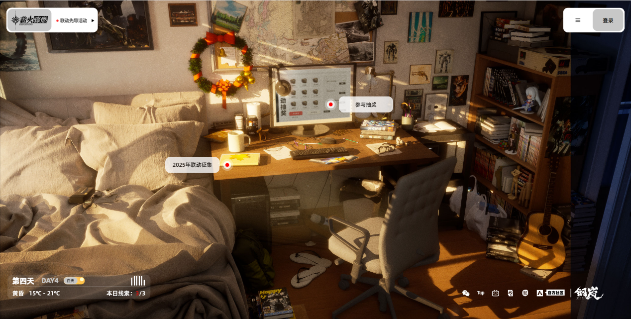 1.在房间内寻找其他IP相关线索物件;联动专题站共有四个天数篇章,每个篇章分为昼夜两个场景,共包含三条线索,找齐当前天数篇章三个线索后,可进入下一个天数篇章;