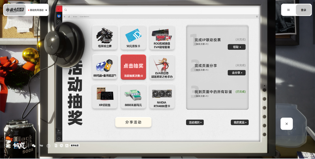 2.活动期间内,达成条件后可获得抽奖次数,参与抽奖即有机会获得游戏内道具奖励及其他实物奖励。